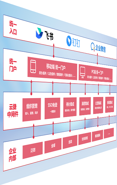 对协作平台提供支持服务,,,支持企业应用与协作平台对接,,,包含组织同步、、消息集成、、、待办集成等。。。。支持目前主流的协作平台:钉钉、、企微和飞书。。。。