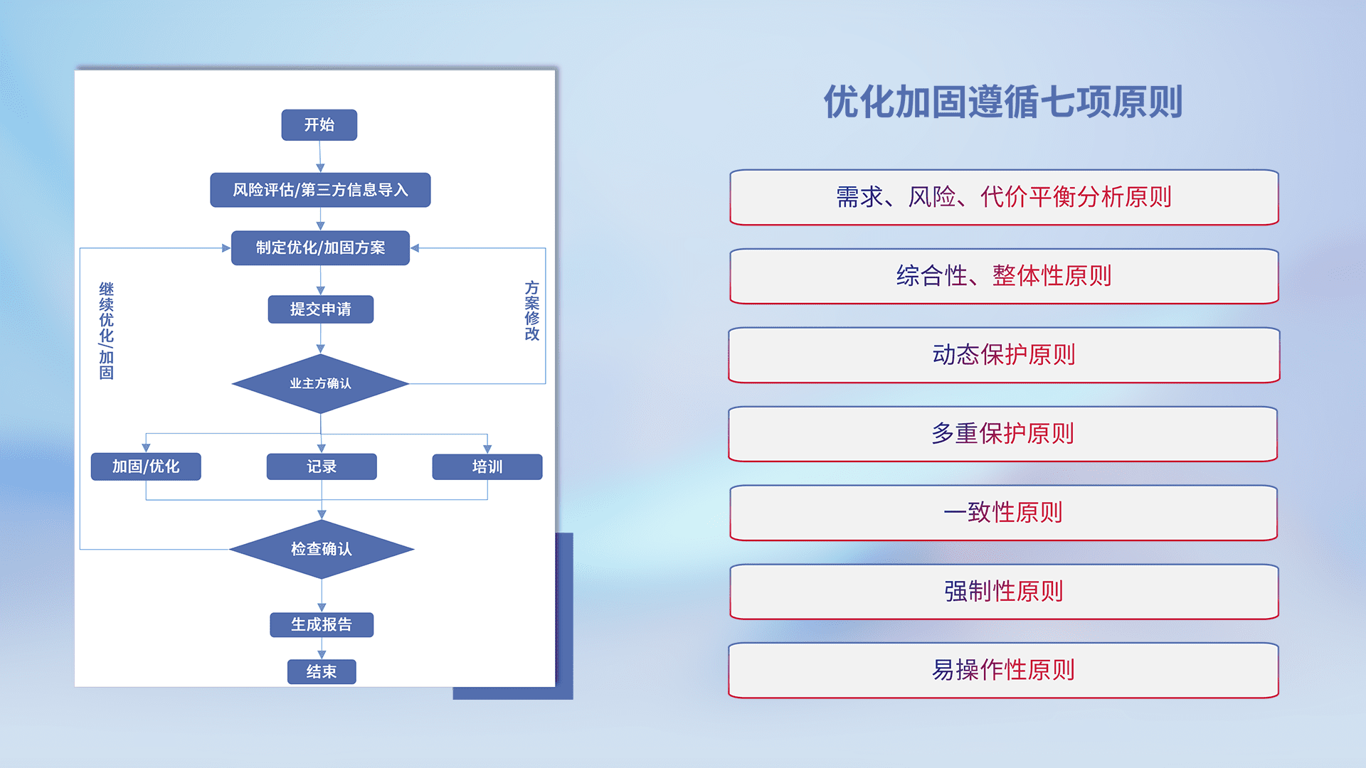 最大程度利用现有资产,,对评估发现的问题进行封堵与整改,,,防止漏洞被利用,,,提升整体网络安全性,,,为客户带来高标准的优化加固服务。。
